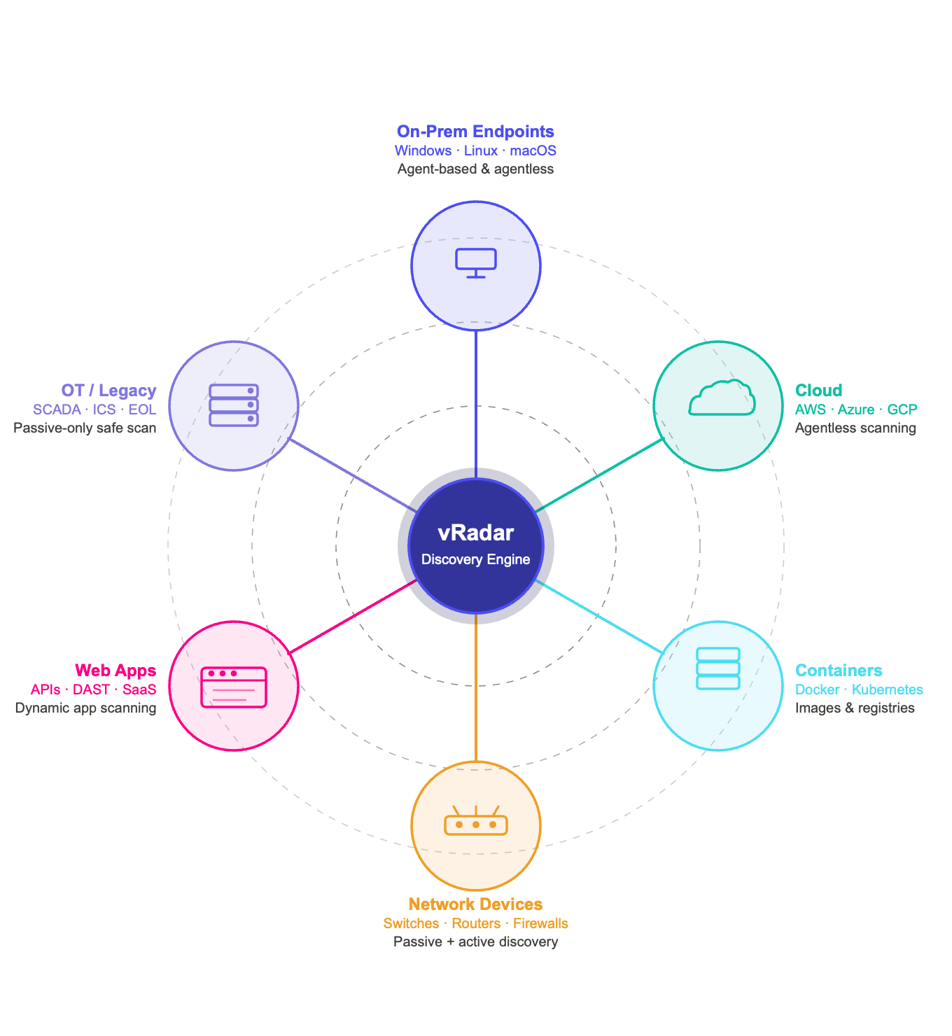- Continuous asset discovery across network, cloud, container, and web application assets not quarterly snapshots