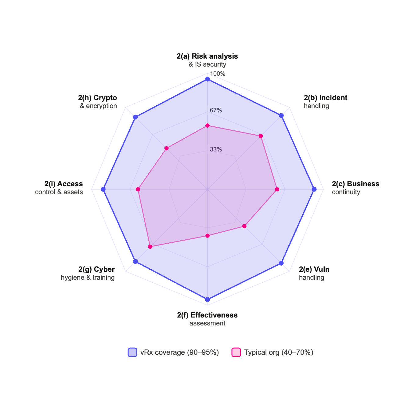 Reading these requirements, two things stand out. First, the scope is comprehensive NIS2 doesn’t pick one or two security domains; it covers the full stack from assets and access control through incident response and effectiveness measurement. Second, the word “demonstrable” matters organizations will need audit-ready evidence, not just internal assertions.