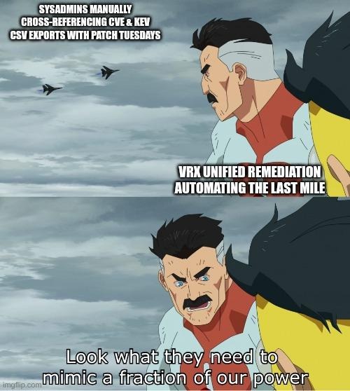 vRx is purpose-built to lead in vulnerability remediation, distinguishing it from generic vulnerability management providers that focus primarily on scanning. While it includes capabilities for scanning and prioritization, these features exist in service of the primary goal: helping teams fix what matters, fast. The platform is designed to address the “last mile” of the security lifecycle - the actual deployment of patches and scripts, in a consistent way across platforms - often the most resource-intensive phase for sysadmins.